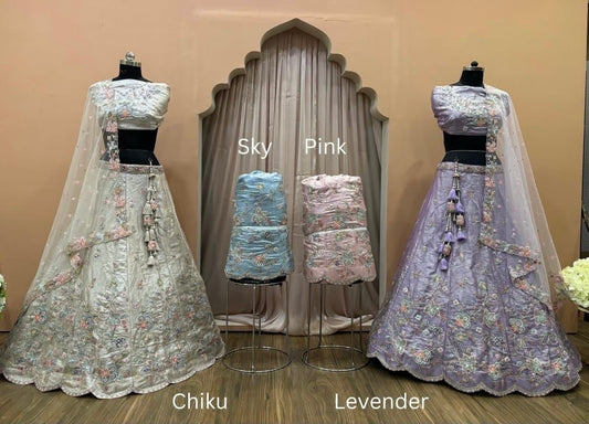 Designer Embroidered Silk Lehenga Choli - D.No 5056 | 5 Colour Options