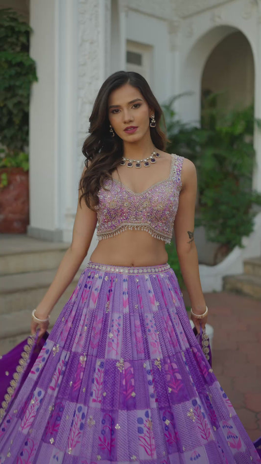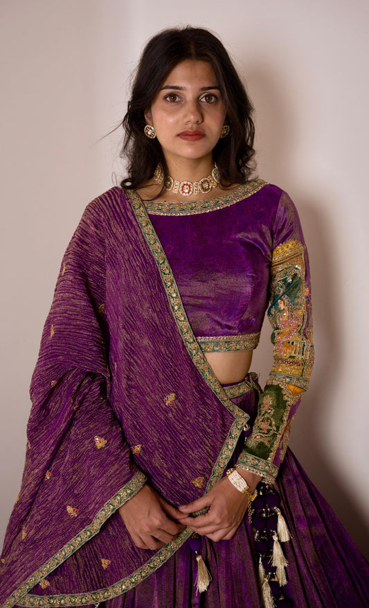Royal Purple Tissue Lehenga Set with Heritage Border Detailing