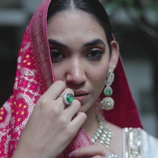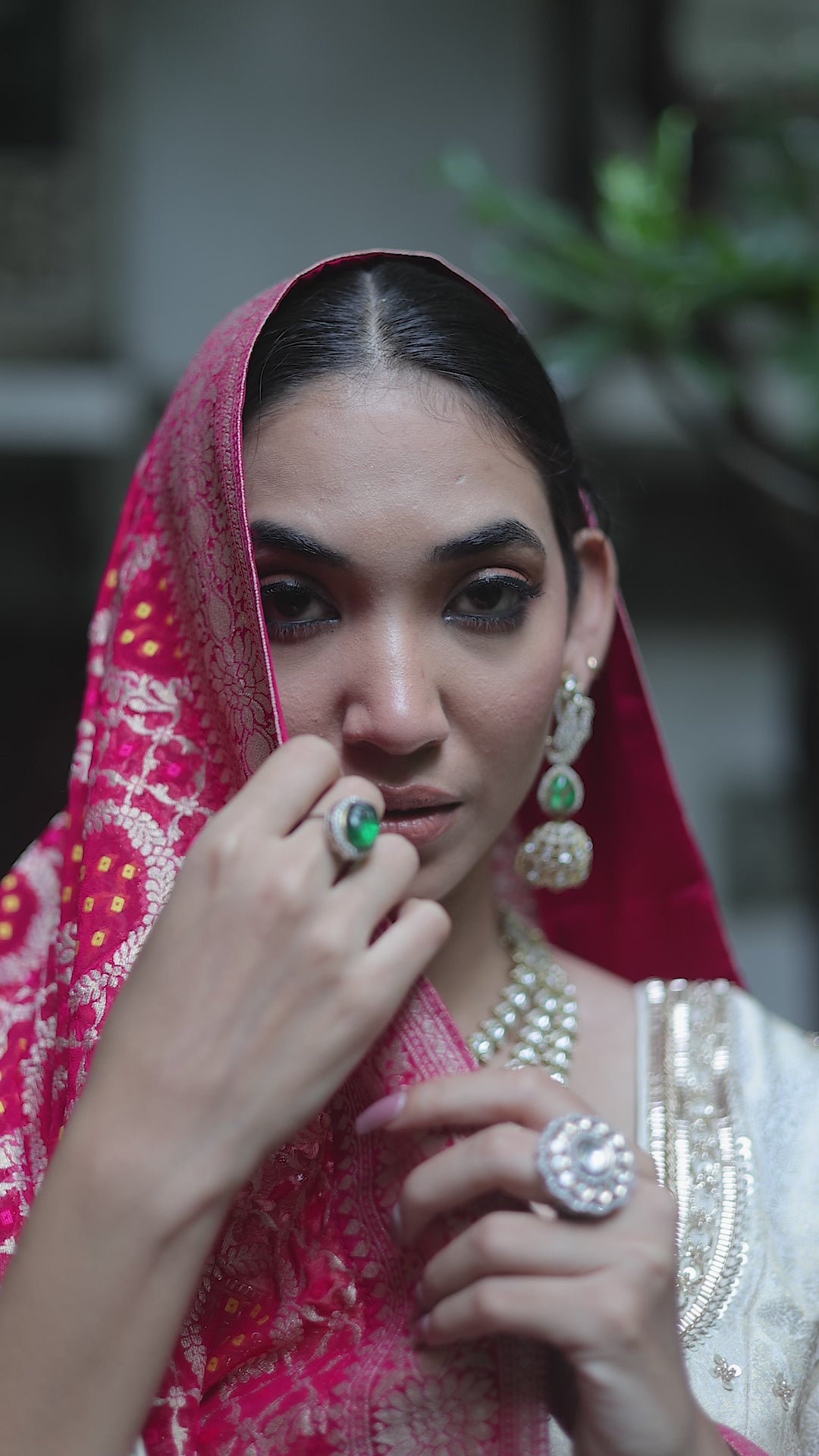 Experience timeless elegance with GIRJA, an ivory lehenga set paired with a rich Banarasi zari dupatta. Designed for weddings and grand festive occasions, this ensemble offers a graceful silhouette with refined detailing.