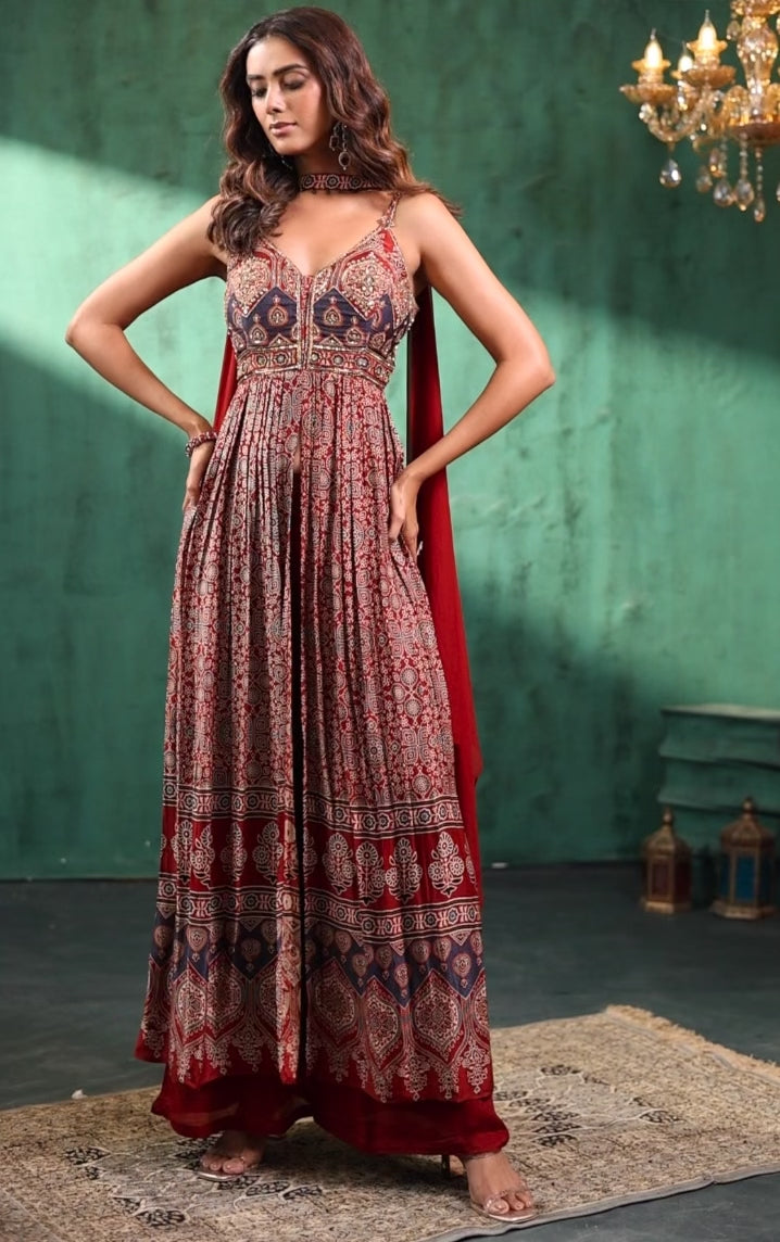 Ira Rust Printed Anarkali Suit Set