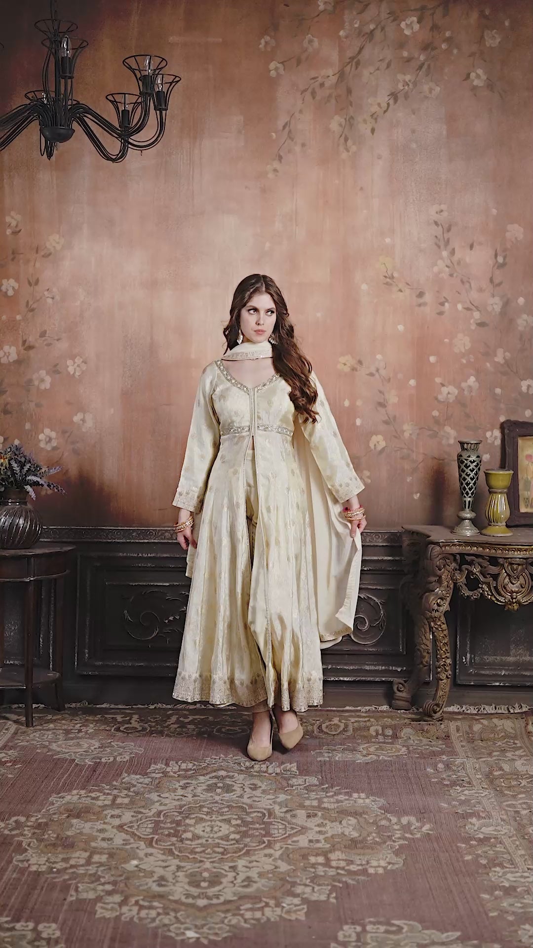 - Kurta: Long silhouette with delicate all-over motifs and refined neckline detailing