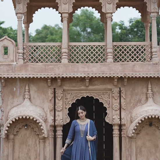 Regal Blue Palazzo Suit With Elegant Embroidery Detailing
