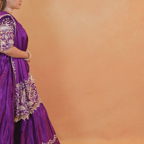 Royal Purple Gaji Silk Lehenga Set with Embroidered Blouse & Dupatta