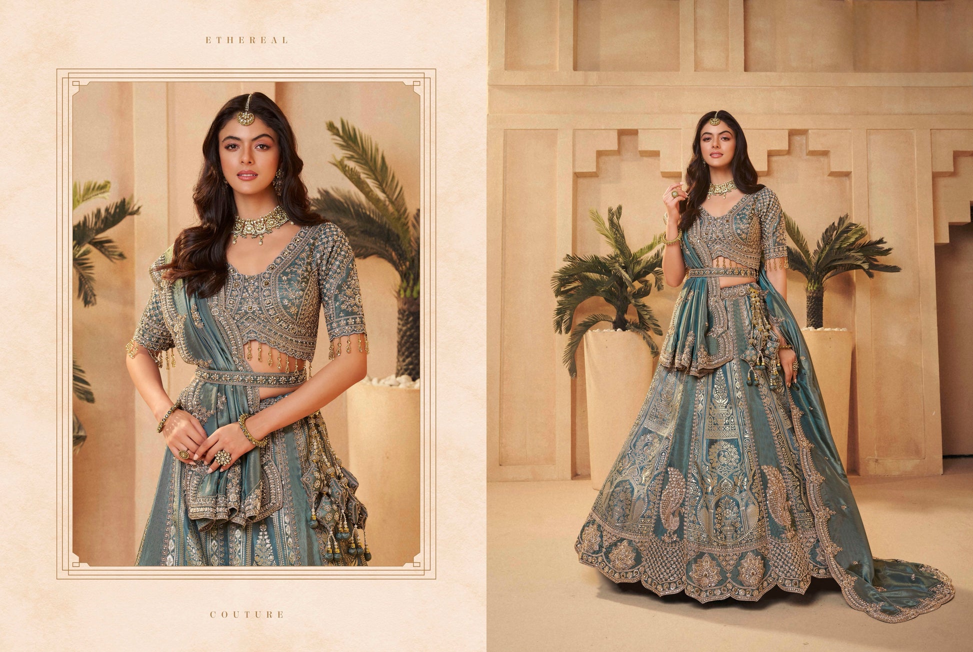 - Grand flared lehenga with detailed border work